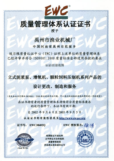 ----幾年來,我廠本著靠科技求發(fā)展,靠信息求市場,靠質(zhì)量求生存,靠管理求效益的治廠方略,大膽進行改革,建立起一套全新的運行機制。2002年9月已通過ISO9001:2000國際質(zhì)量管理體系認證;在2000年12月榮獲河南省科學技術(shù)廳“科技企業(yè)證書“;2001年7月獲河南省科學技術(shù)廳“高新技術(shù)產(chǎn)品證書“;2001年12月獲河南省科學技術(shù)廳“高新技術(shù)企業(yè)認定證書“;曾獲河南省鄉(xiāng)鎮(zhèn)企業(yè)名牌產(chǎn)品稱號。